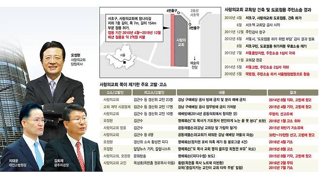 [한겨레] 국내 교회 가운데 가장 값비싼 예배당을 보유하고 있는 서울 서초동 사랑의교회. 지난 5월 대법원의 파기환송 전까지, 공공도로 지하에 교회당 신설을 강행한 사랑의교회와 이를 허가한 서초구청의 처분은 아무도 막을 자가 없어 보였습니다. 1, 2심 재판부는 모두 서초구청과 사랑의교회 손을 들어줬습니다. 법조인 신도의 힘이 작용했던 걸까요?