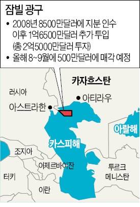 4일 산업통상자원부와 관련 업계에 따르면 석유공사는 최근 이사회를 열어 잠빌 광구 지분 매각을 의결하고, 카자흐스탄 국영석유회사인 카즈무나이가스(KMG)에 지분을 되팔기로 했다. 매각가는 500만달러로 잠정 합의했다. 여기에는 지분 매각대금뿐만 아니라 현지 운영사 잔여 기자재, 현금성 자산 등도 포함한다.