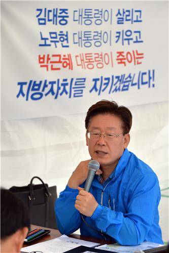 (성남=연합뉴스) 김경태 기자 = 지방재정 개편을 놓고 정부와 대립하고 있는 이재명 성남시장이 홍윤식 행정자치부 장관을 고소하기로 해 파장이 예상된다.
