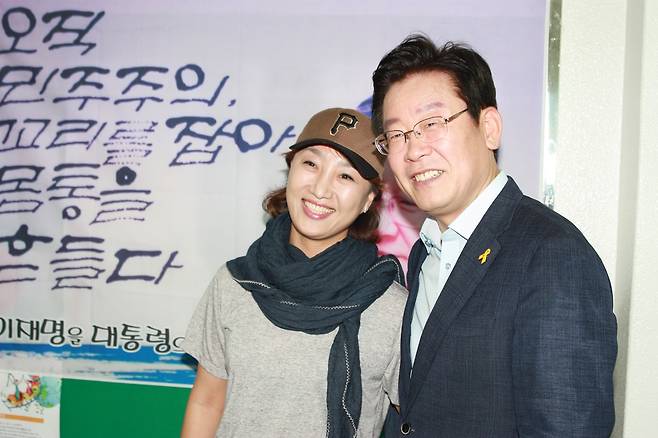 | ▲ 4일 오후 2시 전남 여수시 쌍봉 청소년수련관에서 이재명 초청강연회가 열린가운데 지지자와 사진을 찍는 이재명 시장 |