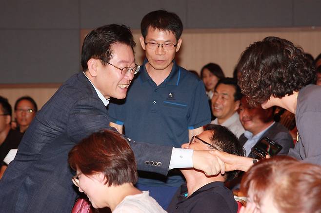 최근 각종 여론조사에서 대권주자로서 의미 있는 순위를 기록 중인 이재명 성남시장의 강연은 시원시원했다. 300여 명의 인파가 강연이 끝날 때까지 현장을 지켰다. 또 강연후 그와 사진을 찍으려는 사람이 줄에 줄을 잇는 진풍경도 펼쳐졌다.