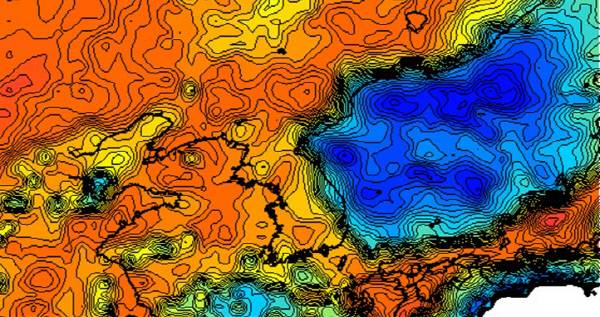 | [S파 속도 지도로 본 지진 취약지대]한국해양과학기술원이 산출한 동아시아 지역 지하 30㎞ 깊이의 지진파 중 S파의 속도. 연구진은 색깔 변화가 심한 부분은 지각의 두께가 급격히 변하며 S파의 속도가 달라지는 곳이라고 설명했다. 국내의 경우 동해안에서 S파의 속도가 급격히 빨라지면서 바다로 갈수록 주황색, 노란색이 파란색으로 변하는 것을 확인할 수 있으며, 내륙보다 바다에서 큰 지진이 발생할 확률이 더 크다고 설명했다. 국회 농림축산식품해양수산위원회 김현권 의원 제공 |
