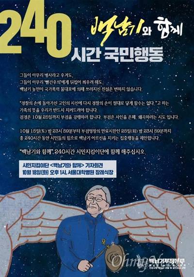 | ▲ 백남기 투쟁본부의 '백남기와 함께' 240시간 국민행동 제안 웹자보. |