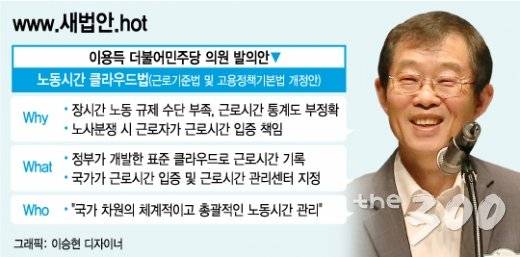 ◇의원 한마디=이용득 의원은 "현재 국회에서 노동시간 중심의 법안 심사가 이뤄지고 있지만 정작 실제 현장의 장시간 노동을 규제할 수단은 부족하다"며 "이번 법안을 통해 노동시간 입증·관리 책임을 국가의 역할로 부여해 임금꺾기, 연장수당 미지급, 과로사 입증 등 관련 분쟁을 해결할 수 있을 것"이라고 말했다. 이어 "국가 차원의 체계적이고 총괄적인 노동시간 관리가 필요한 시점"이라고 덧붙였다.