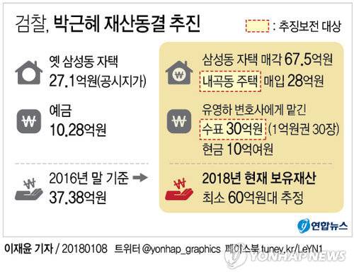 검찰, '국정원 뇌물' 박근혜 재산동결 나섰다..추징 보전 청구(종합)
