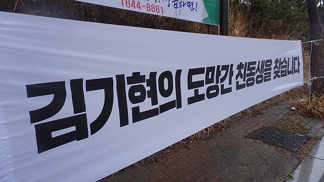 21일, 울산 북구 효정고등학교 인도변에 '김기현의 도망간 친동생을 찾습니다'라고 적힌 10여 장의 현수막이 내걸렸다.