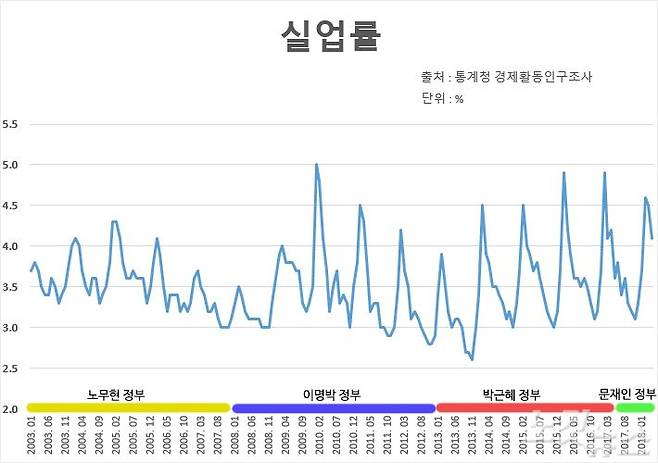 실업률 역시 이명박 정부 때 가장 높았다.