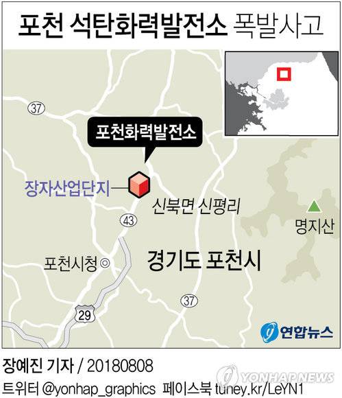 ![포천 화력발전소에서 폭발사고 (포천=연합뉴스) 8일 오전 경기도 포천시 신북면의 한 화력발전소에서 폭발사고가 나 근로자 1명이 숨지고 4명이 다쳤다. 사진은 사고 현장의 모습. [포천소방서 제공]](https://img4.daumcdn.net/thumb/R658x0.q70/?fname=https://t1.daumcdn.net/news/201808/08/yonhap/20180808104322048xsiu.jpg)