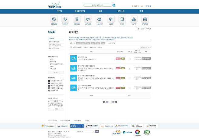 | ▲ 데이터드림 데이터목록 화면. 경기도는 이재명 경기도지사의 방침에 따라 6일부터 경기데이터드림(https://data.gg.go.kr)을 통해 예산과 지출, 계약 등 재정관련 데이터 일체를 누구나 보고 활용할 수 있게 공개하기로 했다. |