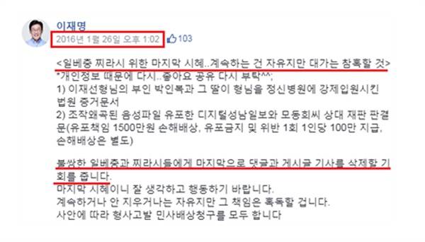 앞서 6.13 지방선거 과정 중 이 지사는 일간베스트(이하 일베) 활동을 해놓고도 이를 부인했다며 익명의 시민으로부터 허위 사실공표 혐의로 고발당했다.