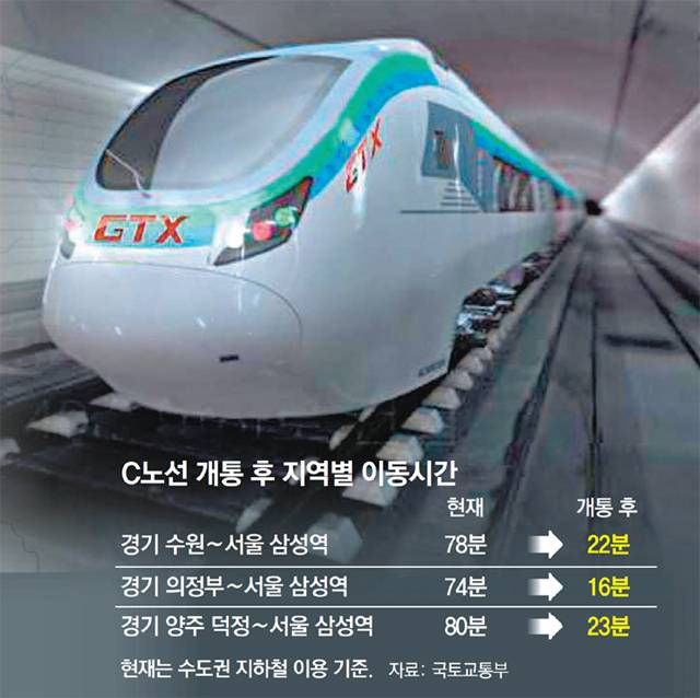 정부는 이르면 2021년 말 GTX C노선의 첫 삽을 뜰 예정이다. 김태형 국토부 민자철도팀장은 “건설에 5년 정도 걸리는 만큼 이르면 2026년경 GTX C노선을 이용할 수 있을 것”이라고 했다. 정부는 GTX C노선이 완공되면 하루 35만 명(2026년 기준)이 이용할 것으로 보고 있다. 총 사업비는 4조3088억 원이다.