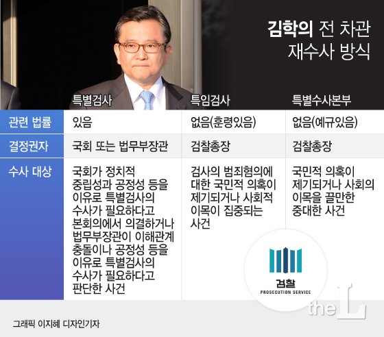 재수사 방식에 대해 문 총장은 계속 고심 중이다. 문 총장이 선택할 수 있는 카드로는 국회나 법무부 장관 등이 결정해 검찰이 아닌 외부에서 수사를 맡는 ‘특별검사' 또는 검찰에서 수사하는 방식인 ‘특임검사·특별수사본부·자체 수사단’ 등이 거론된다.