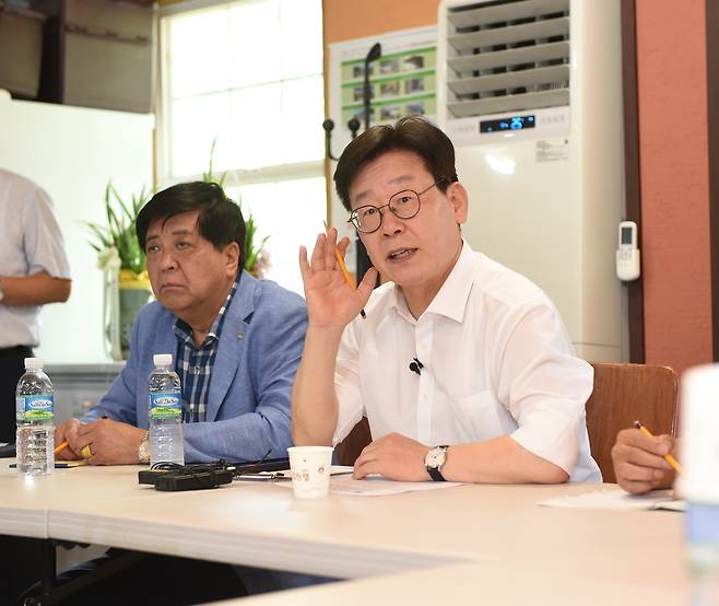 | ▲ 이재명 경기도지사가 23일 오후 양주시 고비골과 여울목에서 하천·계곡 불법행위 대응 관련 현장을 둘러본 후 양주시 석현리 마을회관에서 주변 상인들과 간담회를 하고 있다. |