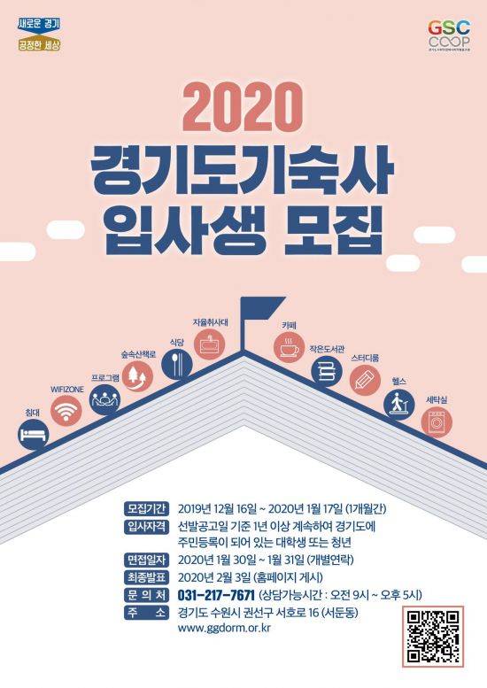 [아시아경제(수원)=이영규 기자] 경기도가 도내 청년과 대학생의 주거 지원을 위해 운영 중인 '경기도기숙사' 입사생을 이달 16일부터 내년 1월17일까지 받는다. 선발 규모는 남녀 구분 없이 140명 안팎이다.