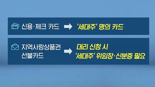 지역사랑상품권, 선불카드로는 세대원의 대리 수령이 가능하지만 이마저도 세대주의 위임장과 신분증이 필요합니다.