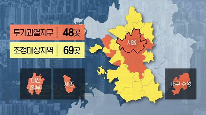 수도권과 일부 지방에서 집값이 다시 들썩이면서 정부가 오늘(17일) 추가 부동산 대책을 내놨습니다. 지도를 보실까요. 경기 서부와 인천, 그리고 대전, 또 청주는 일부만 빼고 '조정대상지역'으로 지정했습니다. 또 수원, 구리를 비롯해 경기와 인천, 대전의 17개 지역을 '투기과열지구'에 추가했습니다. 이들 지역은 대출 규제와 세금, 분양권 전매 제한이 한층 강화됩니다. 또 이른바 '갭 투자'를 차단하기 위해 다양한 대책이 나왔습니다.