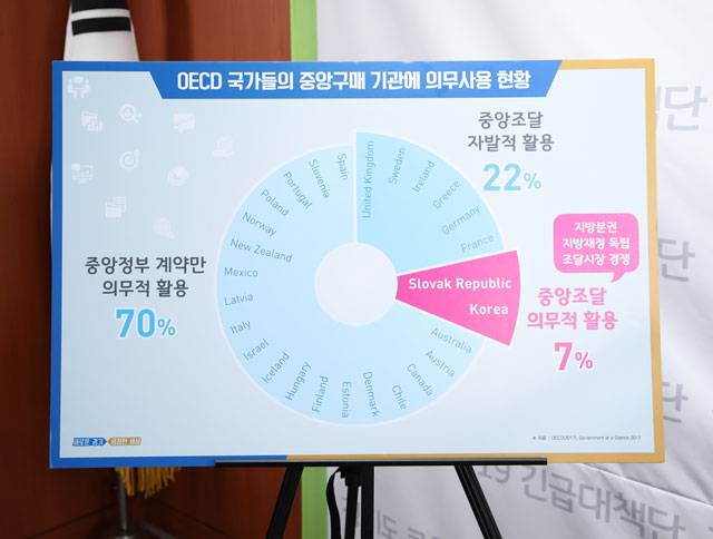 OECD 국가 가운데 중앙조달을 강제하는 국가는 우리나라와 슬로바키아뿐입니다. 이에 대해 조달청은 조달가격 정책은 최저가가 아니라는 입장입니다. 또 나라장터로 공공조달을 일원화해 비리를 근절하는 목적도 있다고 말합니다. 그러나 시중가보다 비싼 가격, 물품의 질에 대한 논란 등은 끊이지 않고 있습니다.
