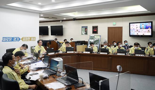 | ▲ 김희겸 경기도 행정1부지사가 10일 오전 도청 재난상황실에서 집중호우 피해 대처상황 점검회의를 주재하고 있다. |
