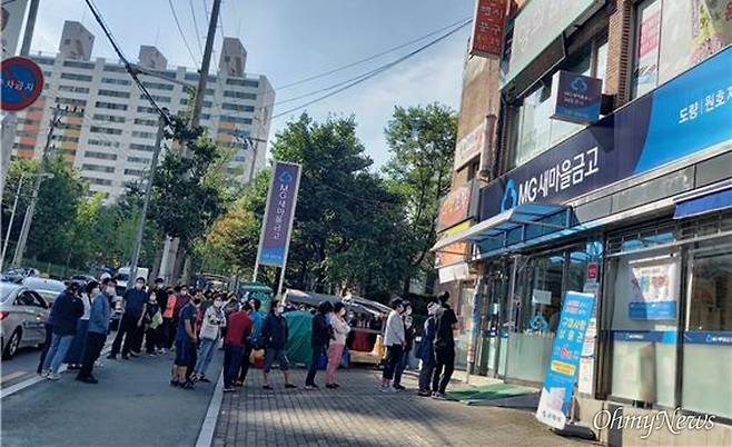 | ▲ 경북 구미시가 구미사랑상품권을 발행한 21일 오전 구미의 한 새마을금고 앞에서 지역화폐를 구매하기 위해 시민들이 줄을 서 기다리고 있다. |