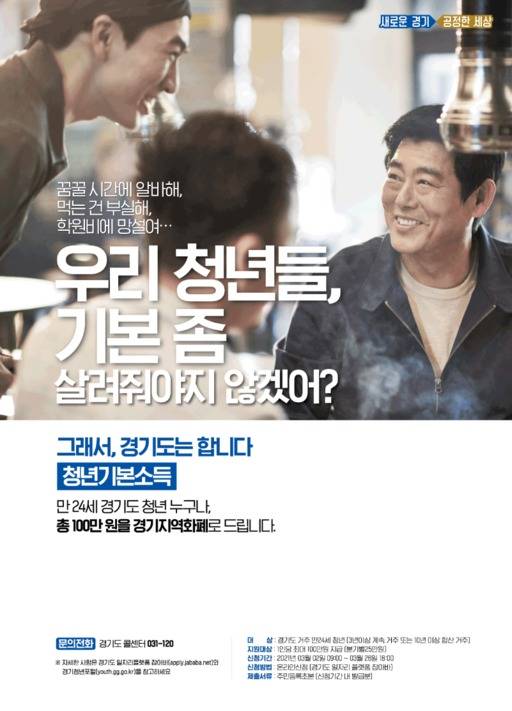최근 경기도일자리재단의 조사에 따르면 도내 청년의 62.8%는 청년정책에 만족하는 것으로 나타났다. 특히 청년기본소득은 71.2%, 청년면접수당은 78.2%가 ‘필요하다’고 답했다.