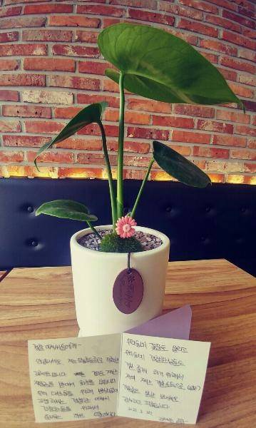 많은 꽃과 화초 중에서 하트모양의 꽃잎에 예쁜 몬스테라 화초(2만 원)를 구매하고 우리 동네 경찰관들에게 손편지를 직접 썼다. 그리고 좀 쑥스럽지만, 엄마, 친구 채원이랑 함께 용기를 내서 남양주남부경찰서 다산파출소를 갔다.