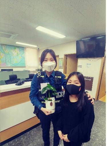 다른 경찰 2명은 신고를 접수하고 처리하느라 정신이 없었는데 송선아 순경님이 친절하게 나의 화분을 받아주셨고 사진도 같이 찍는 것을 허락해주셨다. 그러면서 궁금한 것이나 어려운 점이 있으면 언제든지 파출소에 오라고 하셨다. 나는 너무 긴장해서 개미 같은 목소리로 "네"라고 대답하고 후다닥 파출소를 나왔다.
