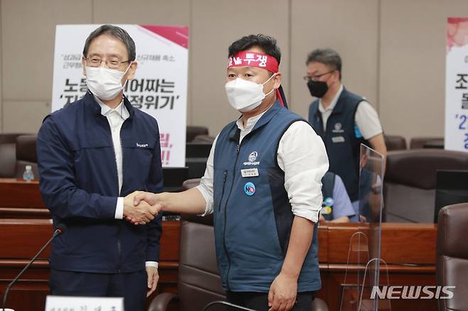 ![[서울=뉴시스] 추상철 기자 = 서울교통공사 노동조합의 총파업을 하루 앞둔 13일 오후 서울 성동구 서울교통공사 본사에서 노사가 최종교섭을 하고 있다. (사진= 서울교통공사 제공) 2021.09.13. photo@newsis.com *재판매 및 DB 금지](https://img3.daumcdn.net/thumb/R658x0.q70/?fname=https://t1.daumcdn.net/news/202109/14/newsis/20210914010553724ryhg.jpg)