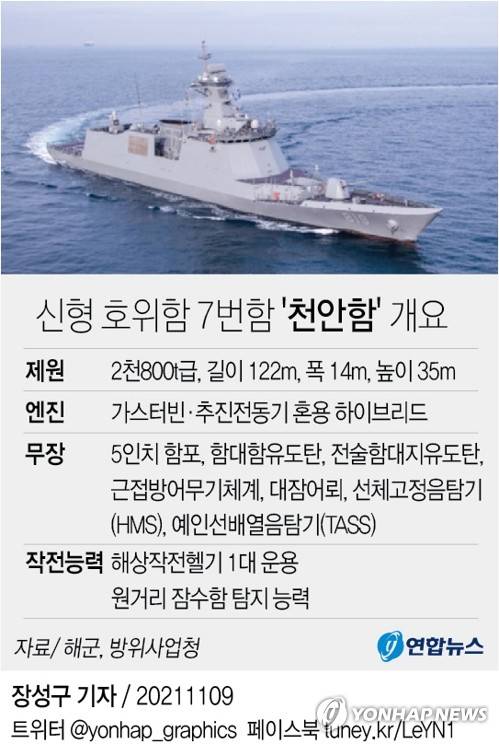 !['천안함' 진수식 (서울=연합뉴스) 9일 오후 울산 현대중공업에서 해군의 신형호위함 7번 함인 천안함(FFG-826) 진수식이 열리고 있다. 2021.11.9